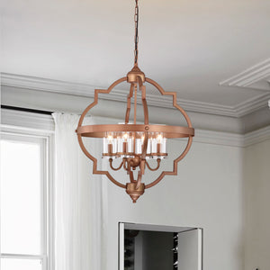 This unique chandelier features an open frame design with four lights, creating a modern and minimalist look. The antique drawing yellow finish adds a touch of vintage charm, while also giving it a bold and eye-catching appearance. With four lights, this chandelier provides ample illumination while casting a warm and inviting glow in your space. Perfect for contemporary or industrial-inspired interiors, this chandelier is sure to make a statement and add a touch of personality to any room.