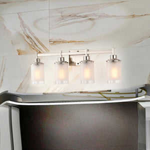 Introducing our 4-Light Wall Sconce with Sweep White Glass Shade—a harmonious marriage of contemporary design and soft elegance. The sconce features four lights embraced by gracefully sweeping white glass shades, creating a subtle and inviting glow. Perfect for bathrooms, hallways, or any space in need of refined lighting, this wall sconce adds a touch of sophistication to your decor. The four lights and the sweeping design of the white glass shades combine to create a captivating visual impact. Illuminate your walls with grace and modern charm using our 4-Light Wall Sconce with Sweep White Glass Shade.