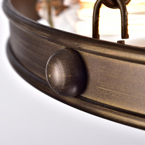 Introducing our captivating 6-light wheel chandelier, adorned with a rich bronze finish. This distinctive lighting fixture seamlessly blends rustic charm with contemporary style. The bronze finish adds warmth and character, enhancing the visual appeal of any space. With six gracefully arranged lights on a unique wheel design, this chandelier creates a focal point that exudes both elegance and functionality. Illuminate your surroundings with a touch of sophistication and a hint of vintage-inspired allure, courtesy of our 6-light wheel chandelier in a stunning bronze finish.