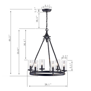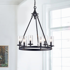 Arques 6 - Light Candle Style Wagon Wheel Chandelier