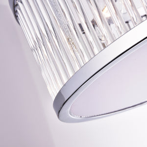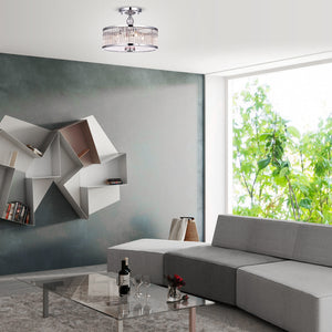 This 4-light drum semi flush mount with a chrome finish is a sleek and modern lighting fixture that adds a touch of sophistication to any space. The drum-shaped shade provides a contemporary look, while the chrome finish adds a polished and elegant touch. The four lights offer ample illumination for medium-sized spaces, making this fixture ideal for living rooms, dining rooms, or bedrooms. The semi flush mount design allows for a streamlined look that takes up minimal space and works well in rooms with low ceilings. The reflective properties of the chrome finish enhance the light, creating a dazzling display that adds dimension to the room. Overall, a 4-light drum semi flush mount with a chrome finish is a beautiful and practical lighting solution that enhances the ambiance of any room, adding a touch of modern sophistication to your home decor.