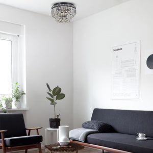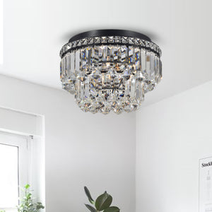Introducing our captivating 4-Light Flush Mount with Tiered Glass Crystals and Coffee Black Finish. This stunning fixture effortlessly blends modern design with a touch of vintage allure. The tiered glass crystals create a mesmerizing display of light, casting a warm and inviting ambiance in any room. The coffee black finish adds a sense of sophistication and complements a variety of décor styles. With its four lights, this flush mount offers both ample illumination and a striking focal point. Transform your space with this exquisite chandelier, a perfect combination of elegance and charm.