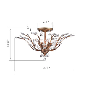 This 5-light cluster semi flush mount with a black brushed gold finish is a stunning lighting fixture that adds a touch of elegance and sophistication to any space. The cluster design features five lights arranged closely together, casting a warm and inviting glow over the room. The black brushed gold finish provides a chic and contemporary look, while the semi flush mount design makes it ideal for lower ceilings or spaces with limited height. This fixture is perfect for illuminating living rooms, dining rooms, or bedrooms, adding a touch of glamour and luxury to any decor scheme. The combination of black and brushed gold creates a striking contrast that makes this fixture a statement piece in any room.