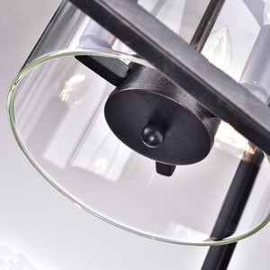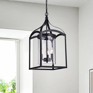 Illuminate your space in a farmhouse-chic style with this Chellis 3 - Light Lantern Geometric Pendant. Crafted of metal in a black finish, this pendant features a clean-lined geometric lantern frame with a curved roof. A clear glass cylindrical shade ensconces three 60 W incandescent E12 candelabra base bulbs (not included) to diffuse ambient light throughout your space, while an adjustable length of chain suspends the whole unit from a sloped ceiling-compatible canopy above to round out the design.