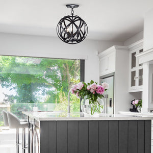 Add an industrial touch to your living space with this Eucryphia 3-Light semi-flush mount. The metal cage shade adds a bold statement while the black/brown finish provides an elegant touch. This damp-rated fixture is suitable for bathrooms, kitchens, and sunrooms, and can be installed on a ceiling for a seamless look.