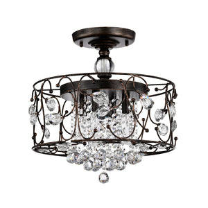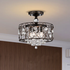 Eurema 4-Light Statement Drum Semi-Flush Mount w/ Crystal Elements - Black Brushed Bronze