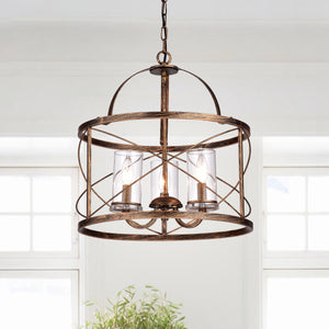 Introducing our 3-Light Lantern Pendant with a luxurious copper gold finish—a captivating blend of vintage charm and contemporary allure. The lantern design adds a touch of nostalgia, while the rich copper gold finish elevates the fixture to a new level of sophistication. Three lights within the pendant emit a warm and inviting glow, creating a cozy atmosphere in any space. Perfect for entryways, kitchens, or dining areas, this pendant effortlessly combines classic elegance with a modern twist. Make a bold statement and infuse your home with warmth and style with our 3-Light Lantern Pendant in a stunning copper gold finish.
