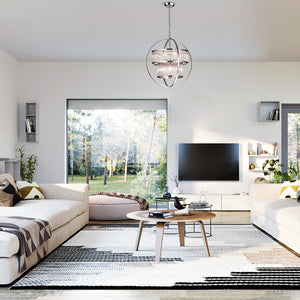 A 9-light globe chandelier with multiple directions and two tiers is a stunning lighting fixture that provides both elegance and functionality. With its nine individual lights arranged in two levels, this chandelier can illuminate large spaces with ease. The globes are designed to emit light in multiple directions, creating a warm and inviting atmosphere in any room. This chandelier is perfect for large dining rooms, entryways, or living rooms where you want to add a touch of sophistication and class. Its elegant design and practical lighting make it a great choice for any home.