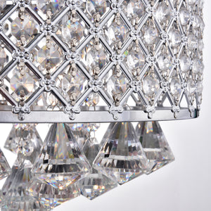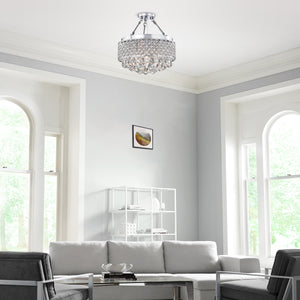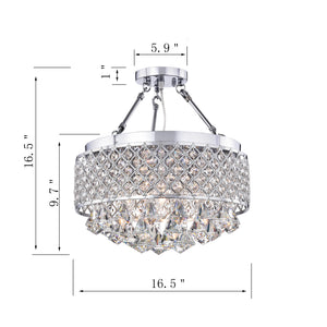 This 4-light semi-flush mount showcases a chandelier-inspired silhouette and standout glam style for you to hang in your entryway, over your dining room table, or in the living room. It features a drum shade that's decked out with glass crystals to enhance the shimmer of the larger hanging crystals inside and beneath four bulbs of up to 60W (all sold separately). Crafted from metal, this fixture has a sleek chrome finish for a contemporary look. It's compatible with dimmer switches, so you're able to control the amount of light you want. It's also LED-compatible, for a more eco-friendly option.