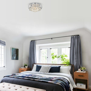 This 4-light semi flush mount is a stylish and elegant addition to any room. It features a drum-shaped shade made of glass crystals that reflect the light beautifully, creating a dazzling effect. The chrome finish adds a modern touch and complements the glass crystals perfectly. With its semi flush mount design, this fixture is perfect for rooms with low ceilings, and it provides ample lighting for any space. This semi flush mount is perfect for those who want a touch of glamour and sophistication in their home décor.